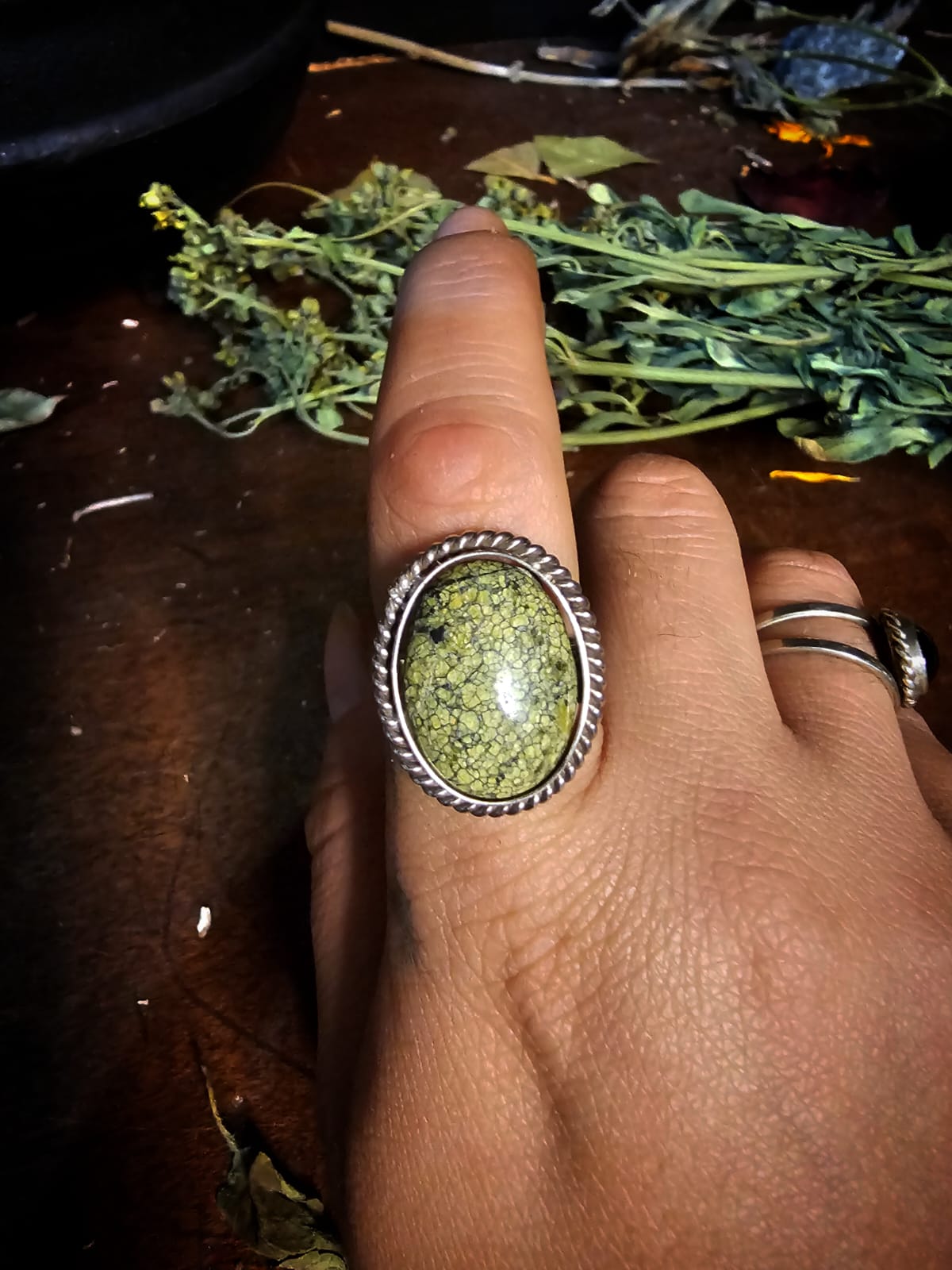 Anel feito em prata alemã com Jaspe Crocodilo