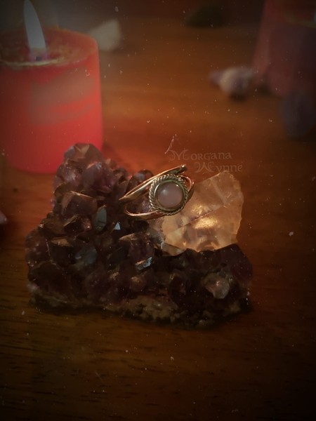 Segure o anel sobre uma planta ou flor e visualize um campo de luz dourada envolvendo você. Diga: