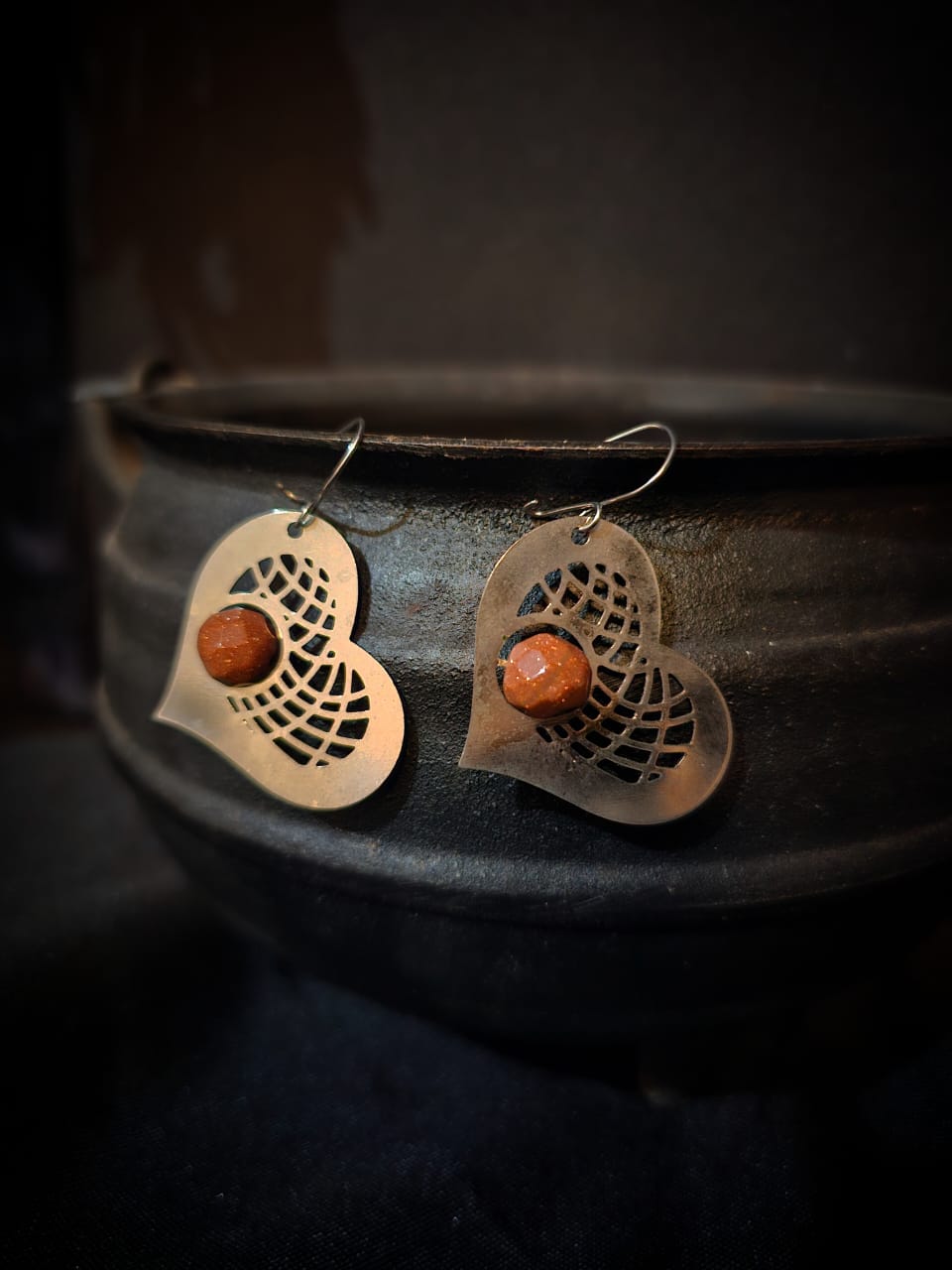 Brinco com banho de prata e pedra do sol (sintética) e fecho em aço cirúrgico