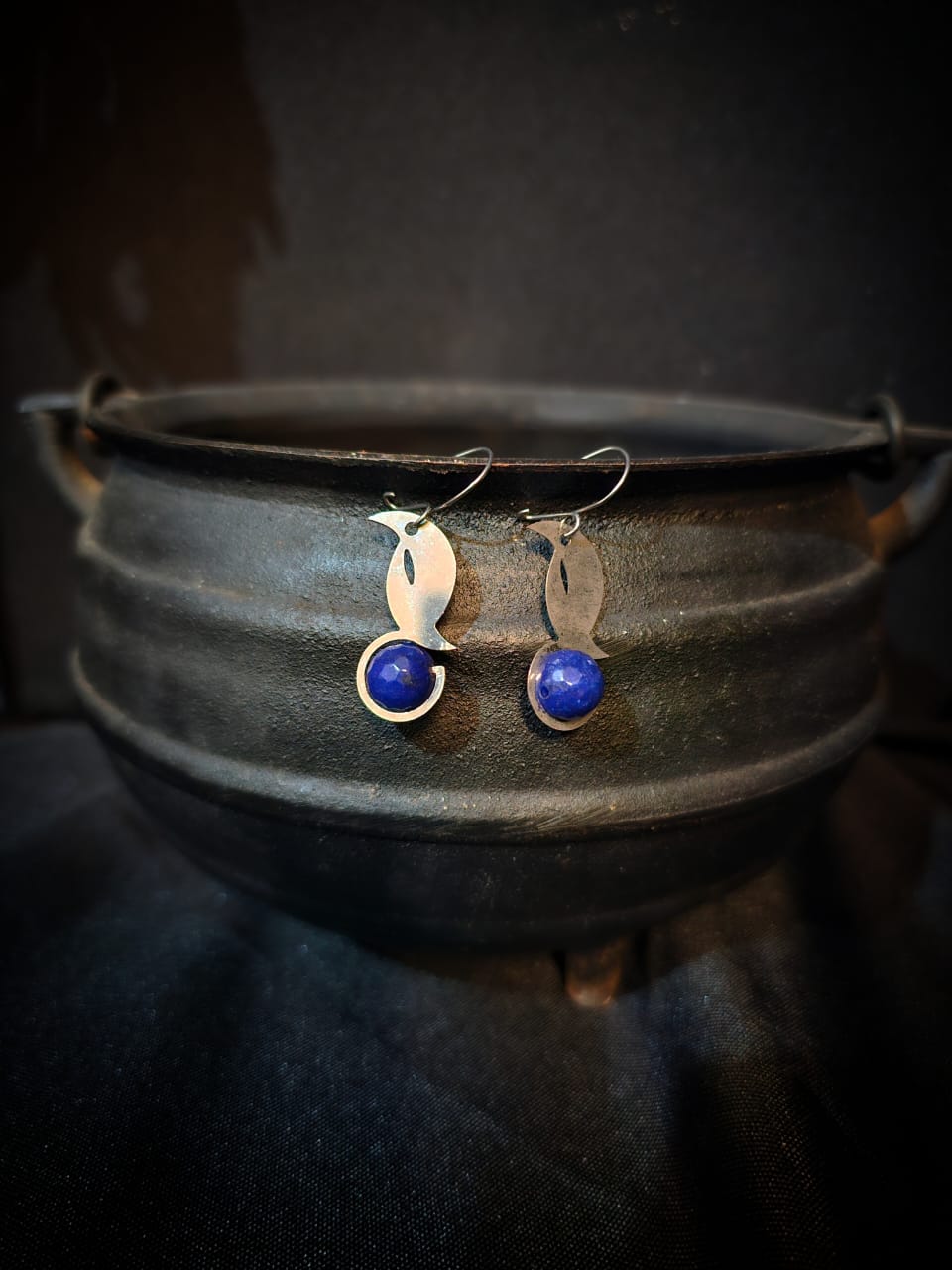 Brinco com banho de prata e jade azul e fecho em aço cirúrgico