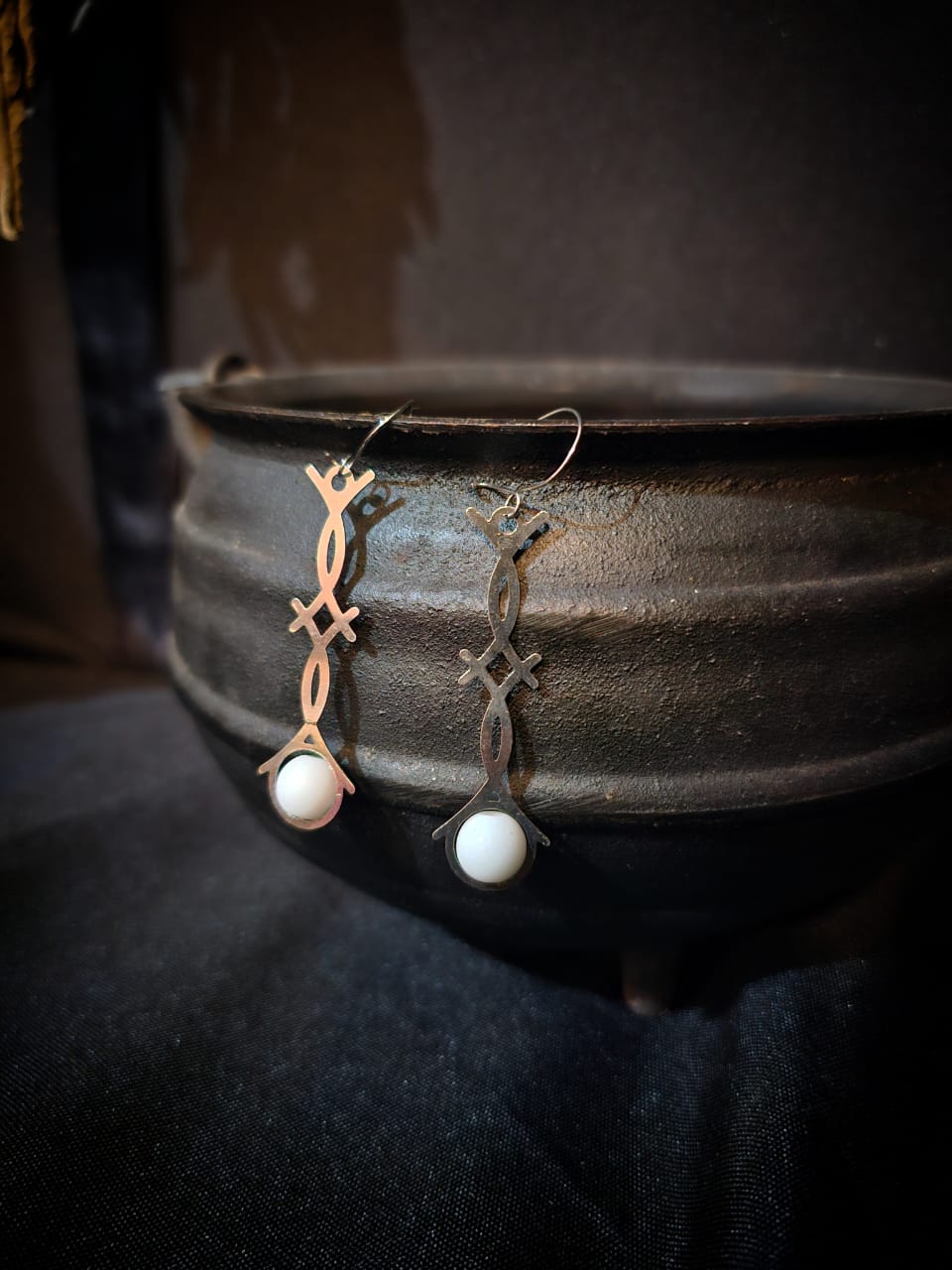 Brinco com banho de prata agata branca e fecho em aço cirúrgico